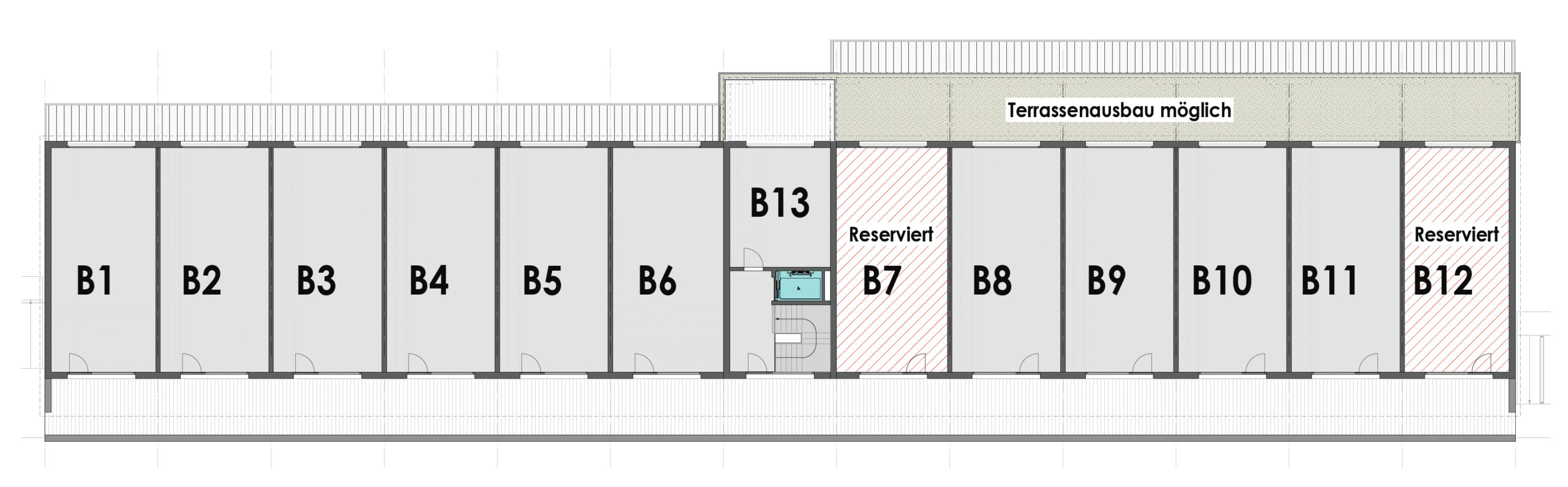 • Gewerberäumlichkeiten B7–B12 Terrasse Ostseite optional möglich
