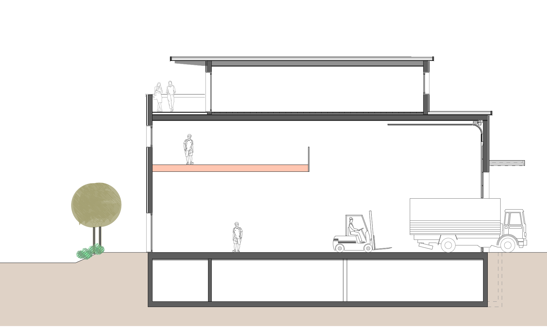 Raumkonzept Gewerberäumlichkeiten mit Attikageschoss